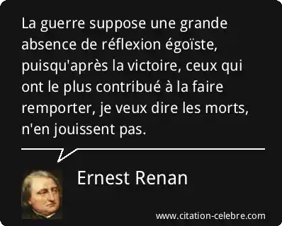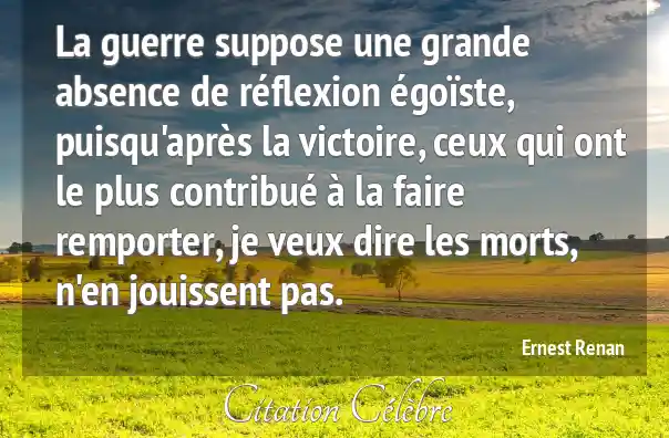 La guerre suppose une grande absence de réflexion égoïste, puisqu'après la victoire, ceux qui ont le plus contribué à la faire remporter, je veux dire les morts, n'en jouissent pas.