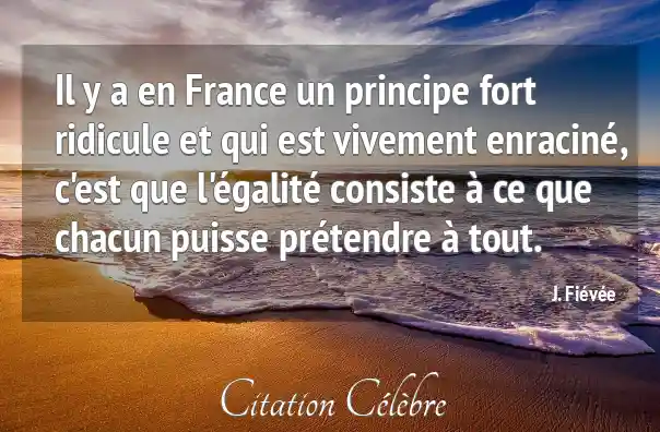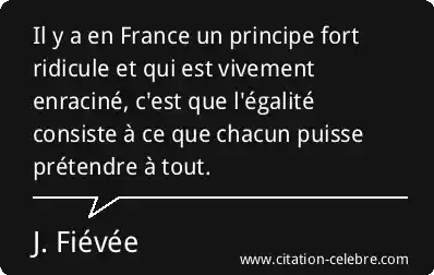 Il y a en France un principe fort ridicule et qui est vivement enraciné, c'est que l'égalité consiste à ce que chacun puisse prétendre à tout.