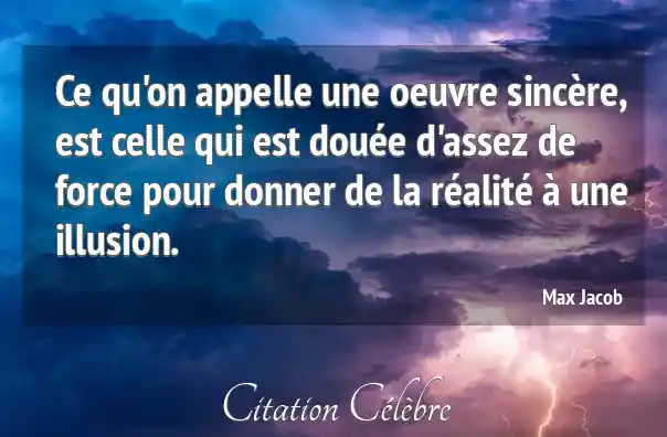 Ce qu'on appelle une oeuvre sincère, est celle qui est douée d'assez de force pour donner de la réalité à une illusion.