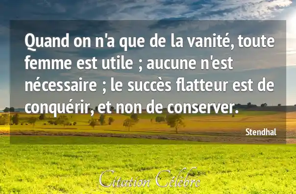Quand on n'a que de la vanité, toute femme est utile ; aucune n'est nécessaire ; le succès flatteur est de conquérir, et non de conserver.