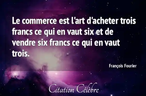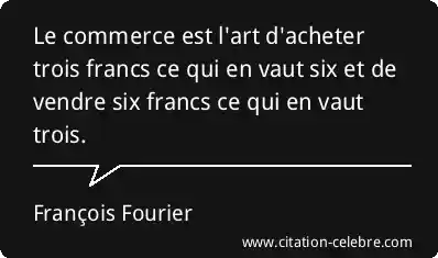 Le commerce est l'art d'acheter trois francs ce qui en vaut six et de vendre six francs ce qui en vaut trois.