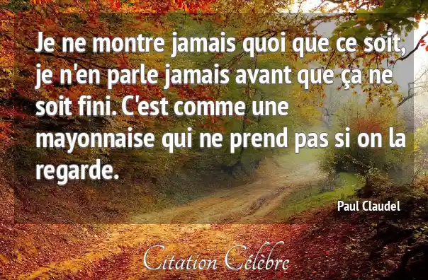 Je ne montre jamais quoi que ce soit, je n'en parle jamais avant que ça ne soit fini. C'est comme une mayonnaise qui ne prend pas si on la regarde.