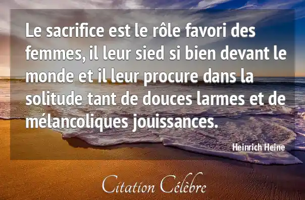 Le sacrifice est le rôle favori des femmes, il leur sied si bien devant le monde et il leur procure dans la solitude tant de douces larmes et de mélancoliques jouissances.