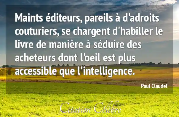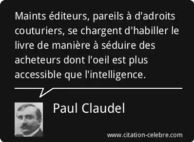 Maints éditeurs, pareils à d'adroits couturiers, se chargent d'habiller le livre de manière à séduire des acheteurs dont l'oeil est plus accessible que l'intelligence.