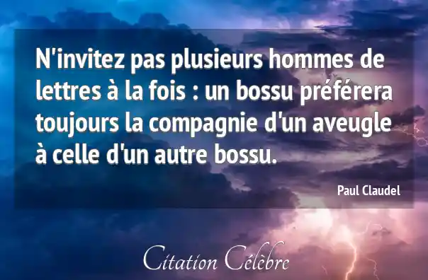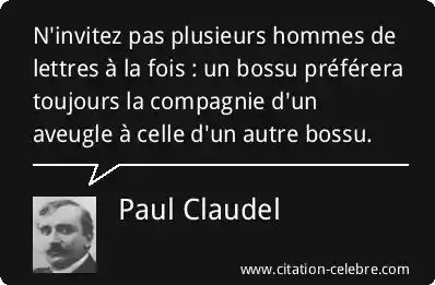 N'invitez pas plusieurs hommes de lettres à la fois : un bossu préférera toujours la compagnie d'un aveugle à celle d'un autre bossu.