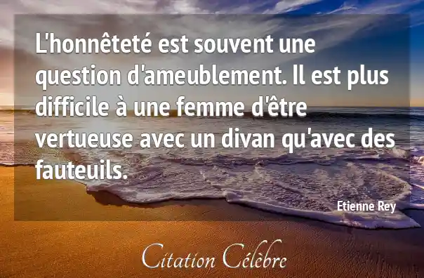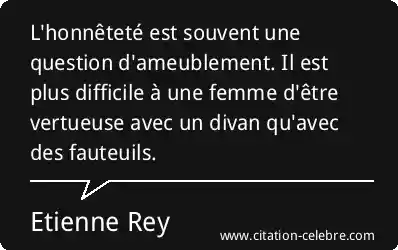 L'honnêteté est souvent une question d'ameublement. Il est plus difficile à une femme d'être vertueuse avec un divan qu'avec des fauteuils.