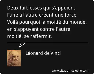 Deux faiblesses qui s'appuient l'une à l'autre créent une force. Voilà pourquoi la moitié du monde, en s'appuyant contre l'autre moitié, se raffermit.
