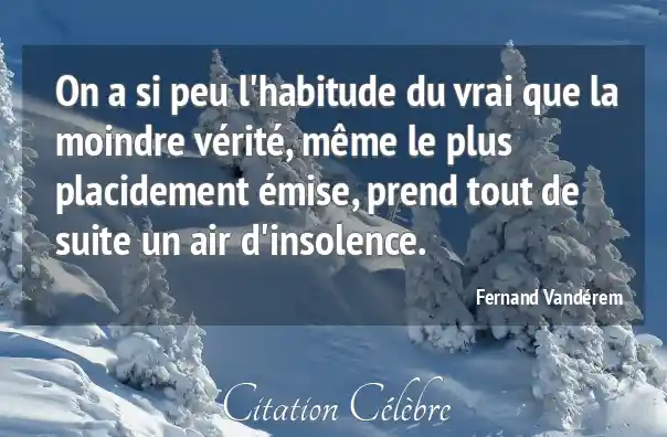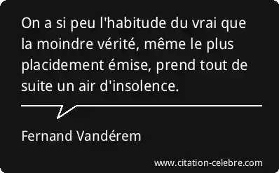 On a si peu l'habitude du vrai que la moindre vérité, même le plus placidement émise, prend tout de suite un air d'insolence.