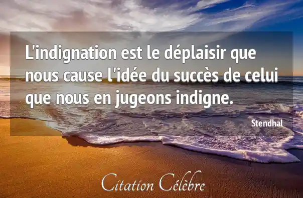 L'indignation est le déplaisir que nous cause l'idée du succès de celui que nous en jugeons indigne.