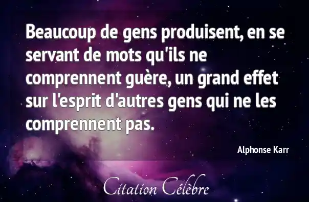Beaucoup de gens produisent, en se servant de mots qu'ils ne comprennent guère, un grand effet sur l'esprit d'autres gens qui ne les comprennent pas.
