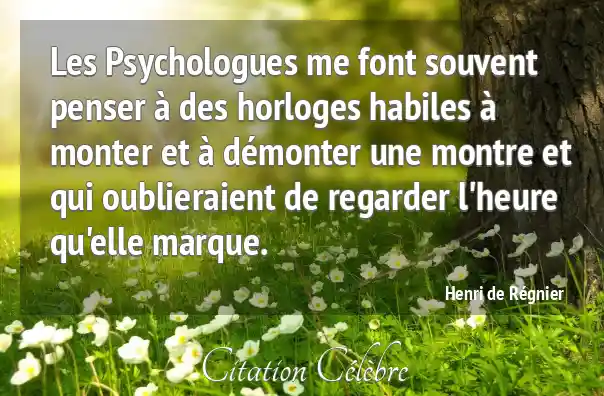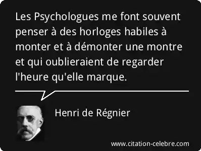Les Psychologues me font souvent penser à des horloges habiles à monter et à démonter une montre et qui oublieraient de regarder l'heure qu'elle marque.