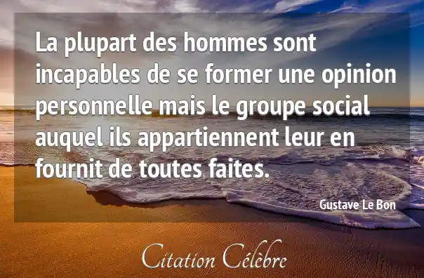 La plupart des hommes sont incapables de se former une opinion personnelle mais le groupe social auquel ils appartiennent leur en fournit de toutes faites.