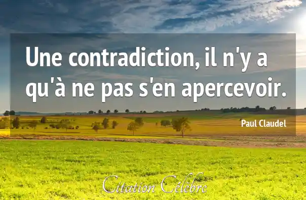 Citation Paul Claudel contradiction : Une contradiction, il n'y a qu'à ne pas s'en apercevoir....