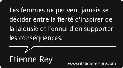Les femmes ne peuvent jamais se décider entre la fierté d'inspirer de la jalousie et l'ennui d'en supporter les conséquences.