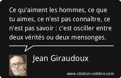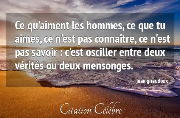 Ce qu'aiment les hommes, ce que tu aimes, ce n'est pas connaître, ce n'est pas savoir : c'est osciller entre deux vérités ou deux mensonges.