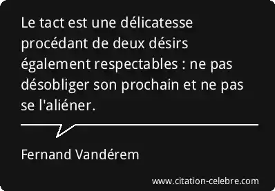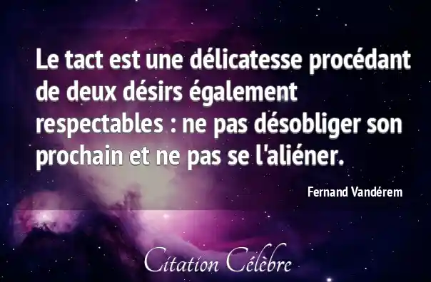 Le tact est une délicatesse procédant de deux désirs également respectables : ne pas désobliger son prochain et ne pas se l'aliéner.