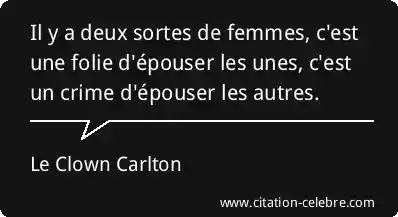 Il y a deux sortes de femmes, c'est une folie d'épouser les unes, c'est un crime d'épouser les autres.