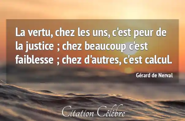 La vertu, chez les uns, c'est peur de la justice ; chez beaucoup c'est faiblesse ; chez d'autres, c'est calcul.