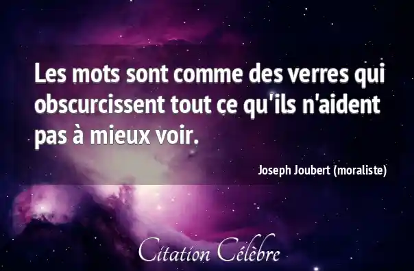 Les mots sont comme des verres qui obscurcissent tout ce qu'ils n'aident pas à mieux voir.