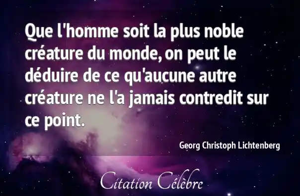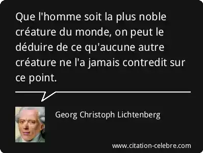 Que l'homme soit la plus noble créature du monde, on peut le déduire de ce qu'aucune autre créature ne l'a jamais contredit sur ce point.
