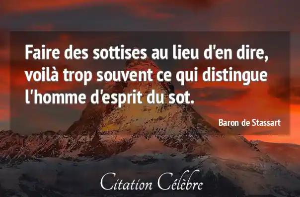 Faire des sottises au lieu d'en dire, voilà trop souvent ce qui distingue l'homme d'esprit du sot.