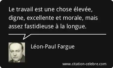 Le travail est une chose élevée, digne, excellente et morale, mais assez fastidieuse à la longue.