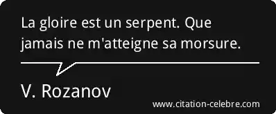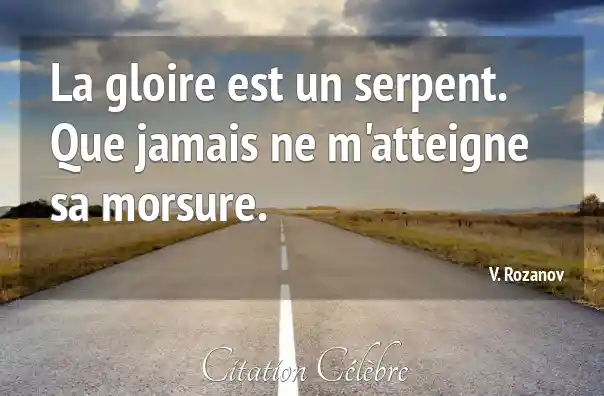 La gloire est un serpent. Que jamais ne m'atteigne sa morsure.