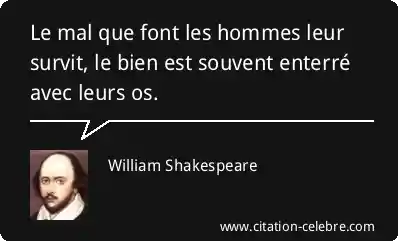 Le mal que font les hommes leur survit, le bien est souvent enterré avec leurs os.