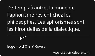 De temps à autre, la mode de l'aphorisme revient chez les philosophes. Les aphorismes sont les hirondelles de la dialectique.