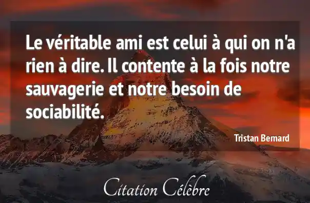 Le véritable ami est celui à qui on n'a rien à dire. Il contente à la fois notre sauvagerie et notre besoin de sociabilité.
