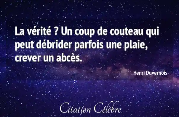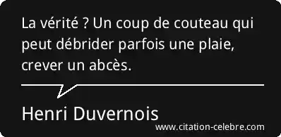 La vérité ? Un coup de couteau qui peut débrider parfois une plaie, crever un abcès.