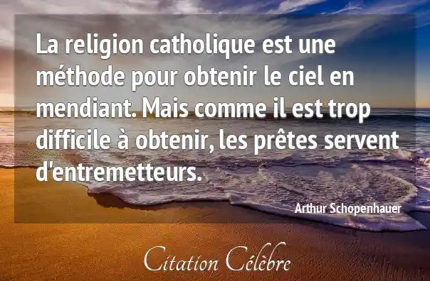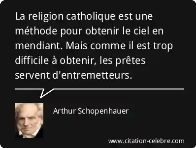 La religion catholique est une méthode pour obtenir le ciel en mendiant. Mais comme il est trop difficile à obtenir, les prêtes servent d'entremetteurs.