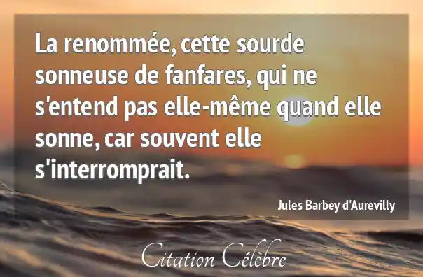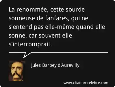 La renommée, cette sourde sonneuse de fanfares, qui ne s'entend pas elle-même quand elle sonne, car souvent elle s'interromprait.