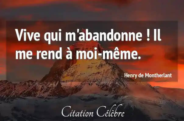 Vive qui m'abandonne ! Il me rend à moi-même.