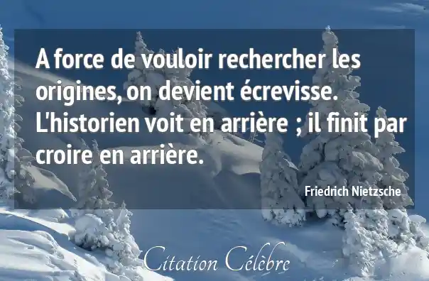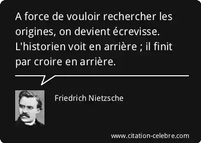 A force de vouloir rechercher les origines, on devient écrevisse. L'historien voit en arrière ; il finit par croire en arrière.
