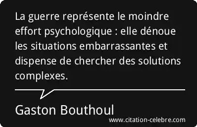 La guerre représente le moindre effort psychologique : elle dénoue les situations embarrassantes et dispense de chercher des solutions complexes.