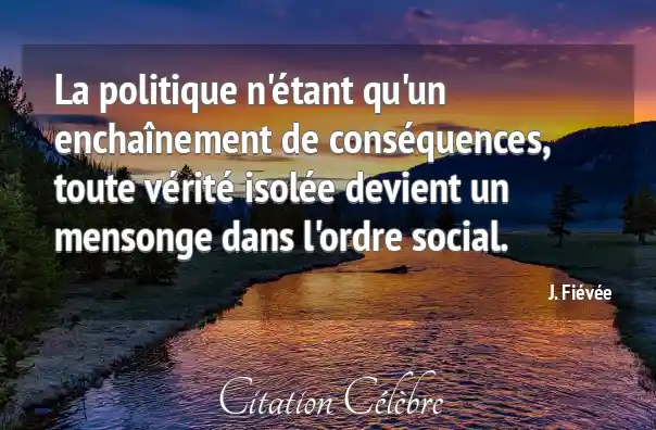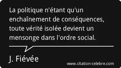 La politique n'étant qu'un enchaînement de conséquences, toute vérité isolée devient un mensonge dans l'ordre social.