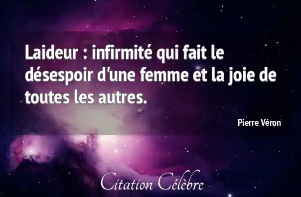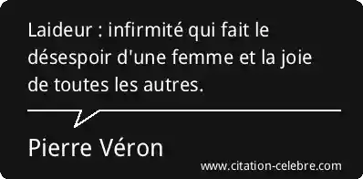 Citation Pierre Véron femme : Laideur : infirmité qui fait le désespoir d'une femme et...