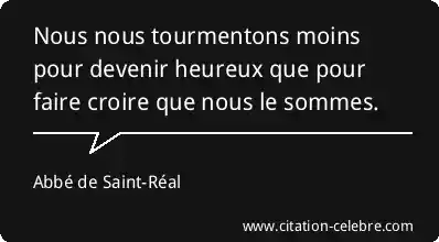Nous nous tourmentons moins pour devenir heureux que pour faire croire que nous le sommes.