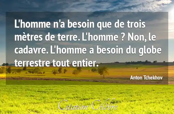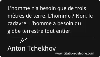 L'homme n'a besoin que de trois mètres de terre. L'homme ? Non, le cadavre. L'homme a besoin du globe terrestre tout entier.