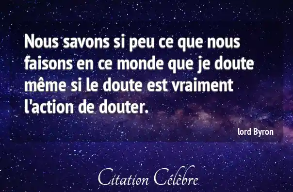 Nous savons si peu ce que nous faisons en ce monde que je doute même si le doute est vraiment l'action de douter.