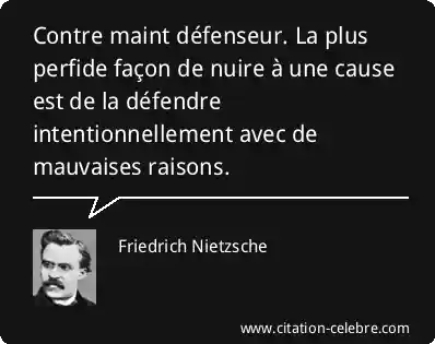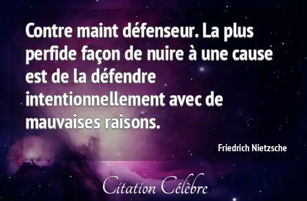 Contre maint défenseur. La plus perfide façon de nuire à une cause est de la défendre intentionnellement avec de mauvaises raisons.