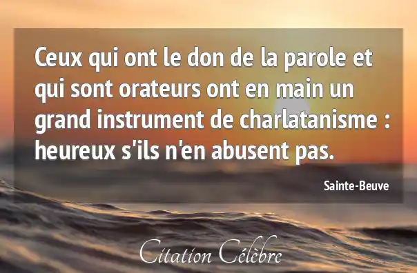 Ceux qui ont le don de la parole et qui sont orateurs ont en main un grand instrument de charlatanisme : heureux s'ils n'en abusent pas.