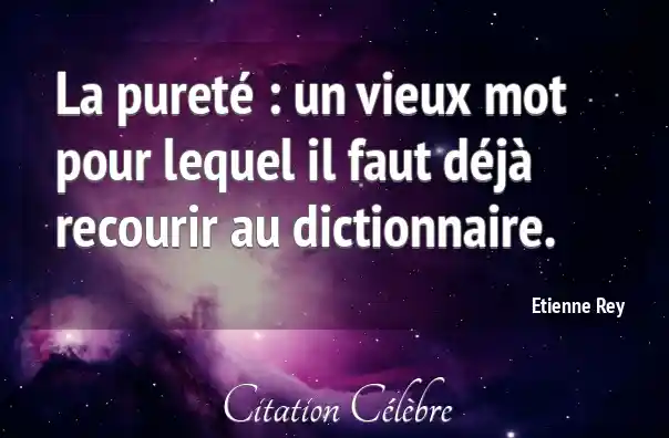 La pureté : un vieux mot pour lequel il faut déjà recourir au dictionnaire.