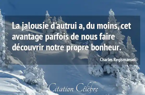 La jalousie d'autrui a, du moins, cet avantage parfois de nous faire découvrir notre propre bonheur.