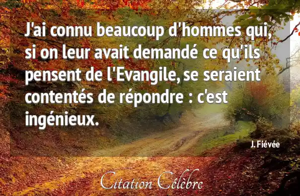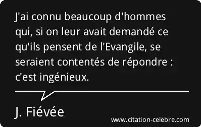 J'ai connu beaucoup d'hommes qui, si on leur avait demandé ce qu'ils pensent de l'Evangile, se seraient contentés de répondre : c'est ingénieux.