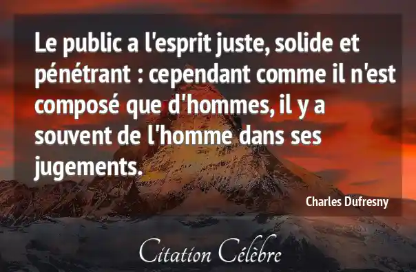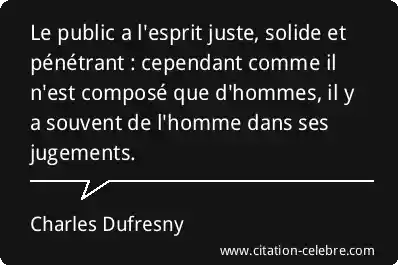 Le public a l'esprit juste, solide et pénétrant : cependant comme il n'est composé que d'hommes, il y a souvent de l'homme dans ses jugements.