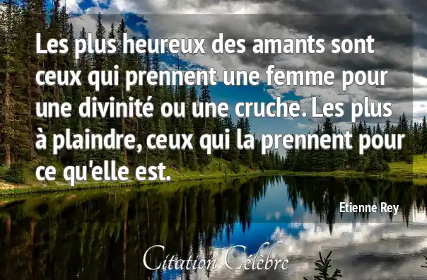 Les plus heureux des amants sont ceux qui prennent une femme pour une divinité ou une cruche. Les plus à plaindre, ceux qui la prennent pour ce qu'elle est.