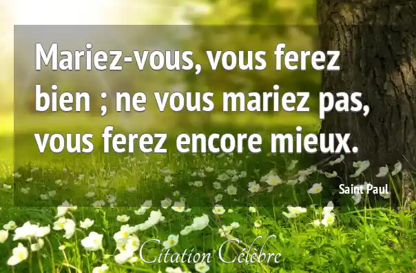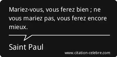Mariez-vous, vous ferez bien ; ne vous mariez pas, vous ferez encore mieux.