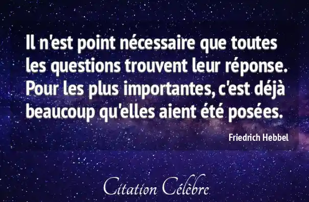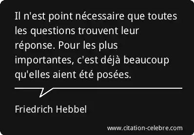 Il n'est point nécessaire que toutes les questions trouvent leur réponse. Pour les plus importantes, c'est déjà beaucoup qu'elles aient été posées.